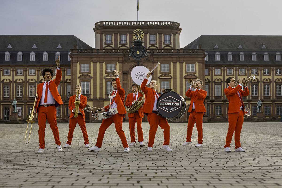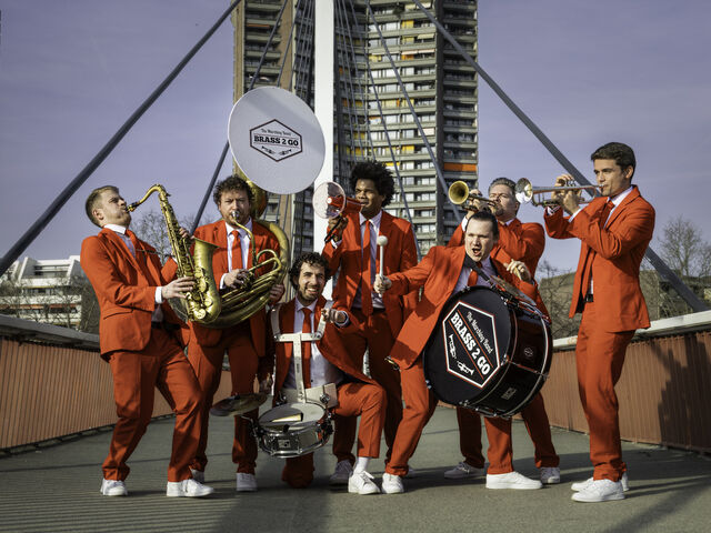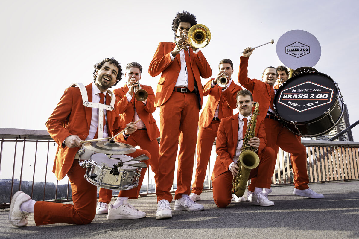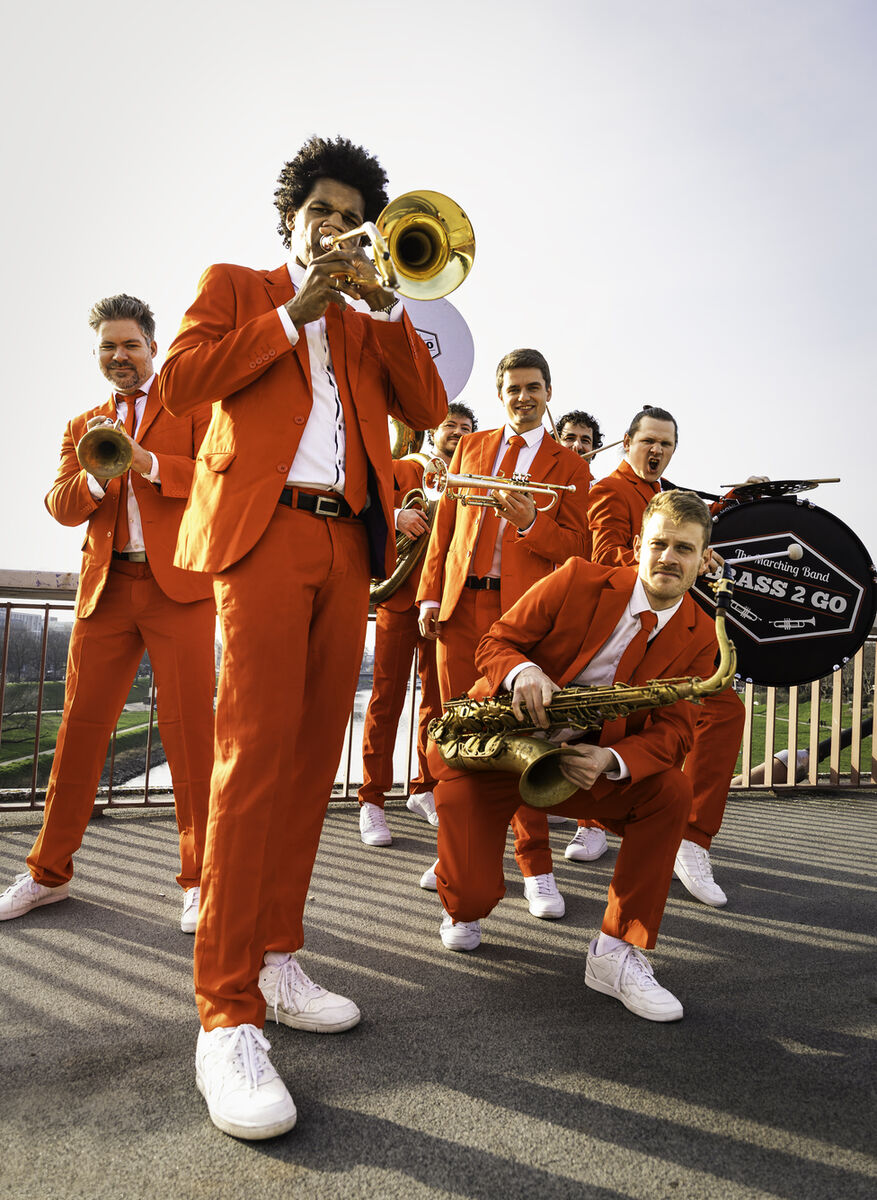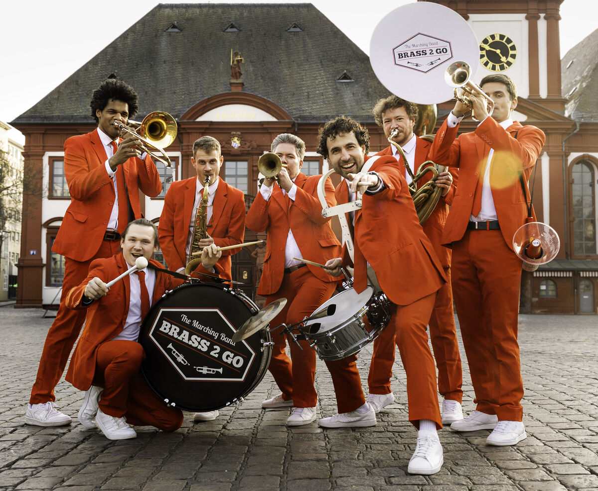Brass2Go - die mobile Brassband mit den roten Anzügen. Hier trifft deutsche Blasmusiktradition auf heiße Rhythmen aus New Orleans. Die sieben Musiker haben es sich zur Aufgabe gemacht Freude und gute Laune in einem einmaligen Erlebnis zu verbreiten. Brass2Go - die mit den roten Anzügen.